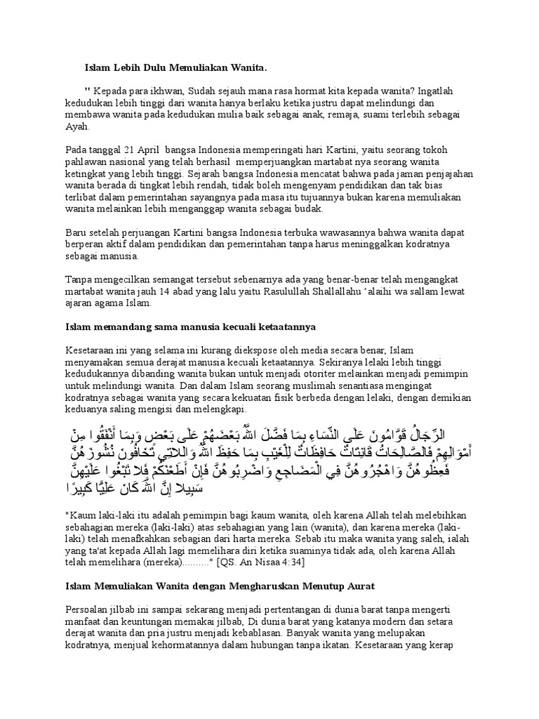 Perempuan Dalam Pandangan Islam Tulisan Agustin Hanafi