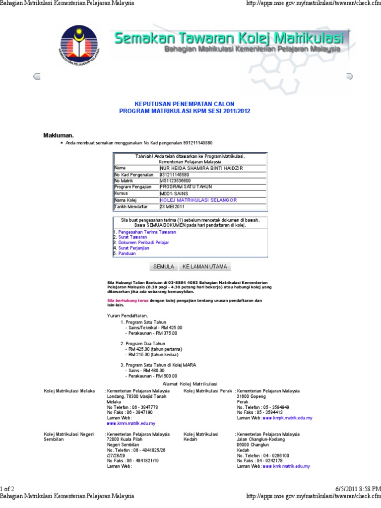 Check Kpm Matriculation Intake 2015 16 Semakan Ke Program Matrikulasi Kpm 2015 16 Spm Soalan