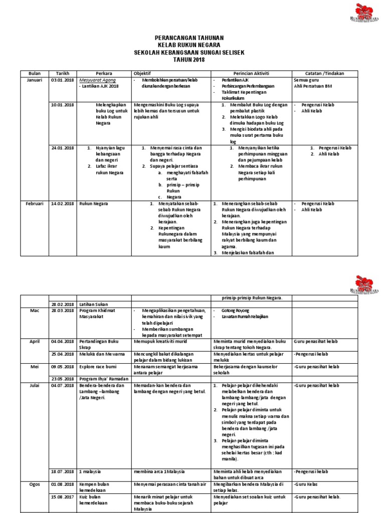 Doc Perancangan Tahunan Kelab Rukun Negara 2016 Robiah Bidin Academia Edu