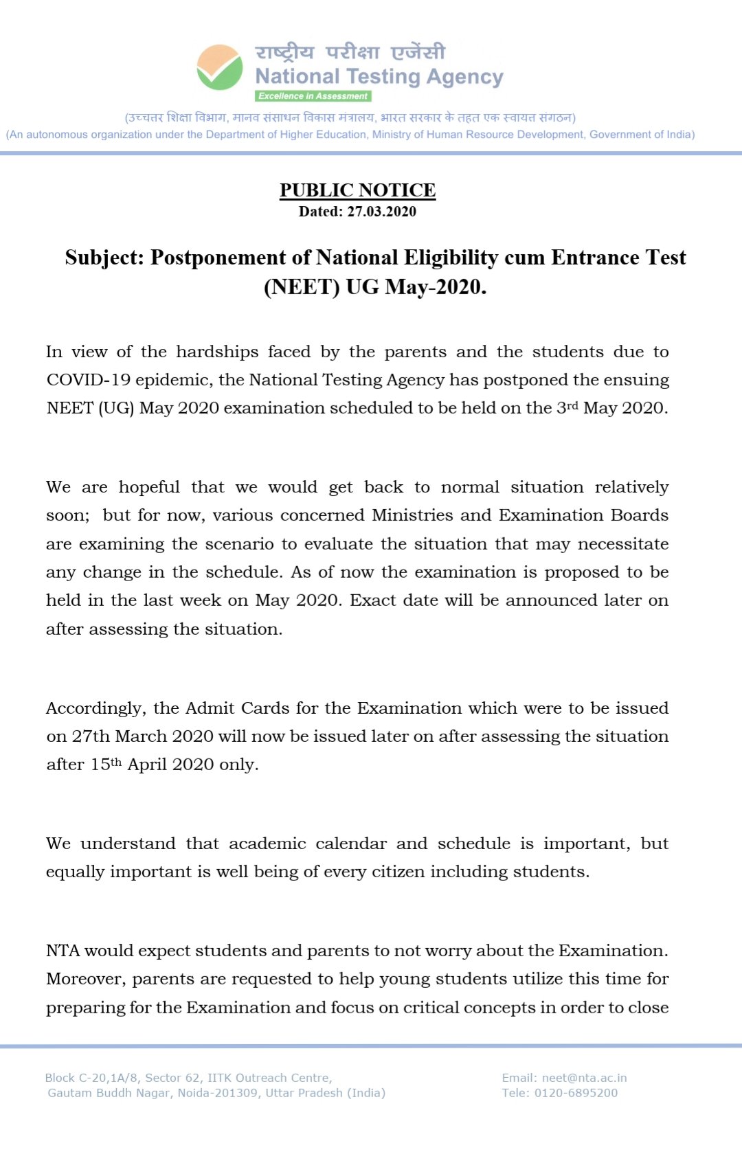 Ministry Of Education On Twitter Since Parents And Students Have To Travel To Different Examination Centres To Avoid Any Inconvenience To Them Union Hrd Minister Drrpnishank Has Directed National Testing Agency Dg Nta