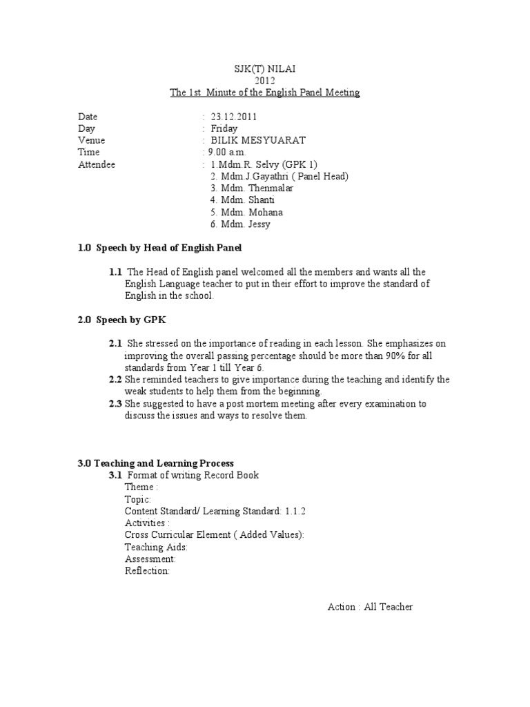 Doc Minit Mesyuarat Bahasa Inggeris Bil 1 2018 Doc Aini Syazwani Abdul Rahman Academia Edu