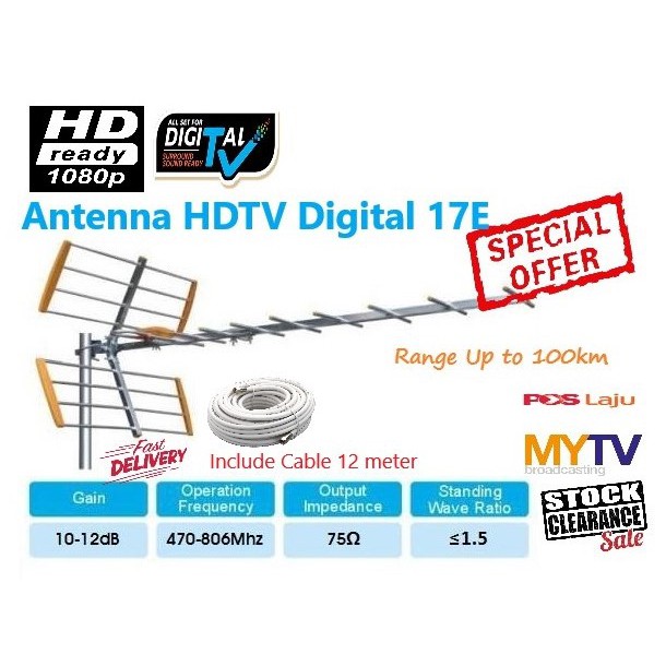 Jp 5e Digital Uhf Antenna Tv For Dtt Digital Malaysia Myfreeview Tv Mytv Antenna Hdtv Antenna Coverage Upto 80km Complete With 10metres High Quality Rg 6 White Coaxial Cables Lazada