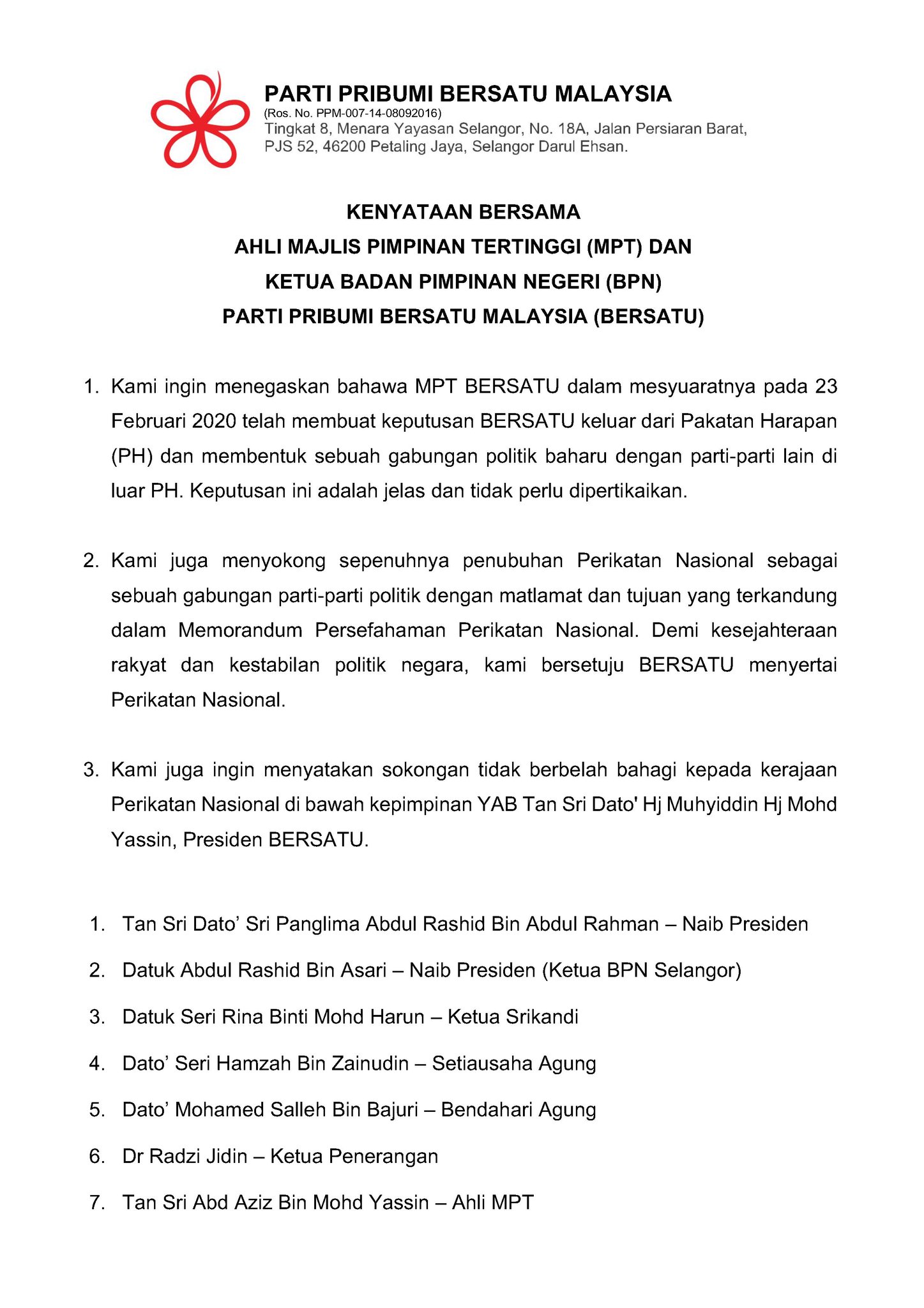 Emmanuel Samarathisa On Twitter Just In Bersatu Supreme Council And State Leaders Reiterate The Party S Decision To Leave Pakatan Harapan And Forge Ahead With Perikatan Nasional So What Becomes Of Mahathir And