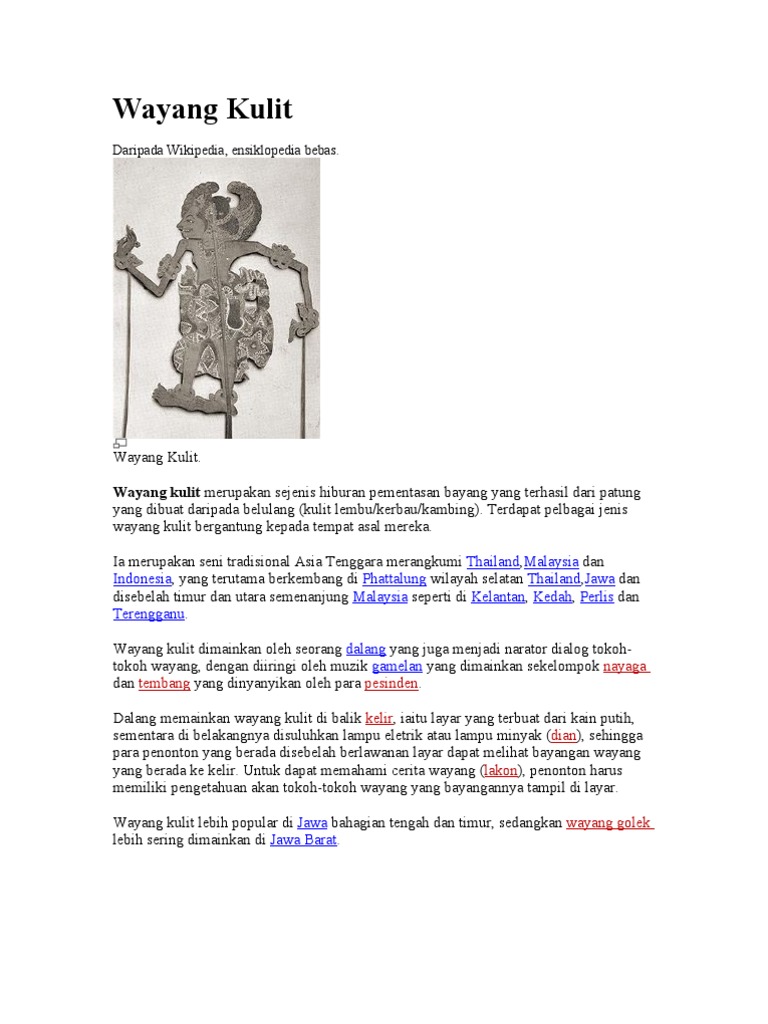 Wayang Kulit Wikipedia Bahasa Melayu Ensiklopedia Bebas