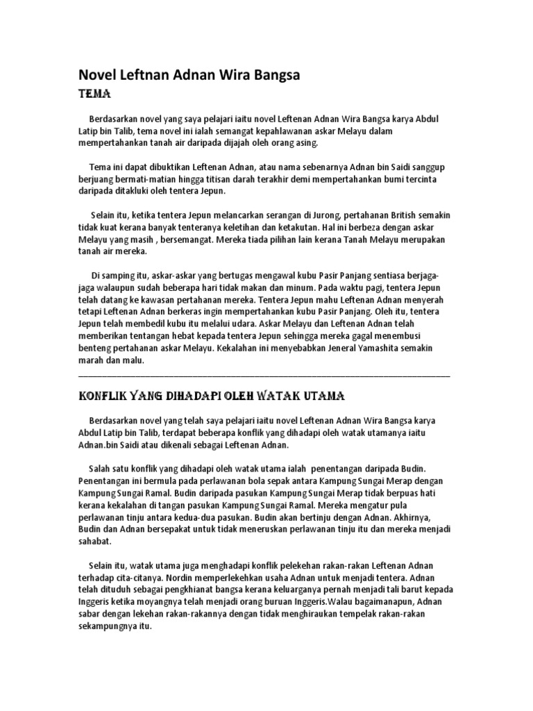 Novel Leftenan Adnan Wira Bangsa Nota Ringkas