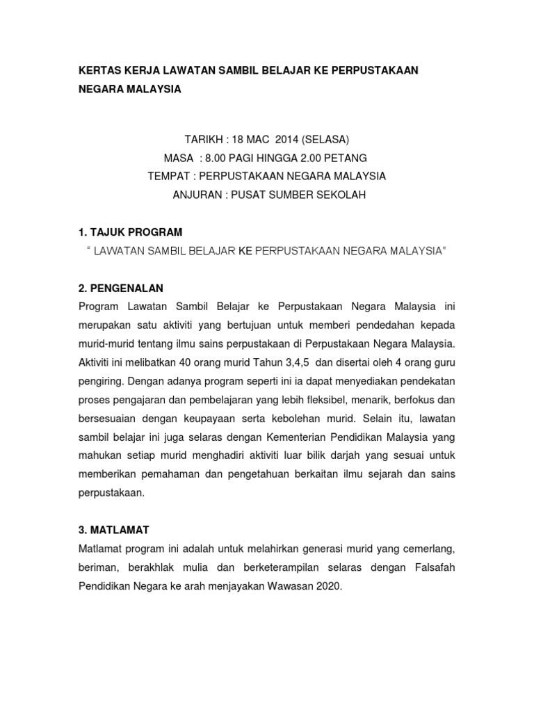 Kertas Kerja Lawatan Sambil Belajar Ke Perpustakaan Negara Malaysia