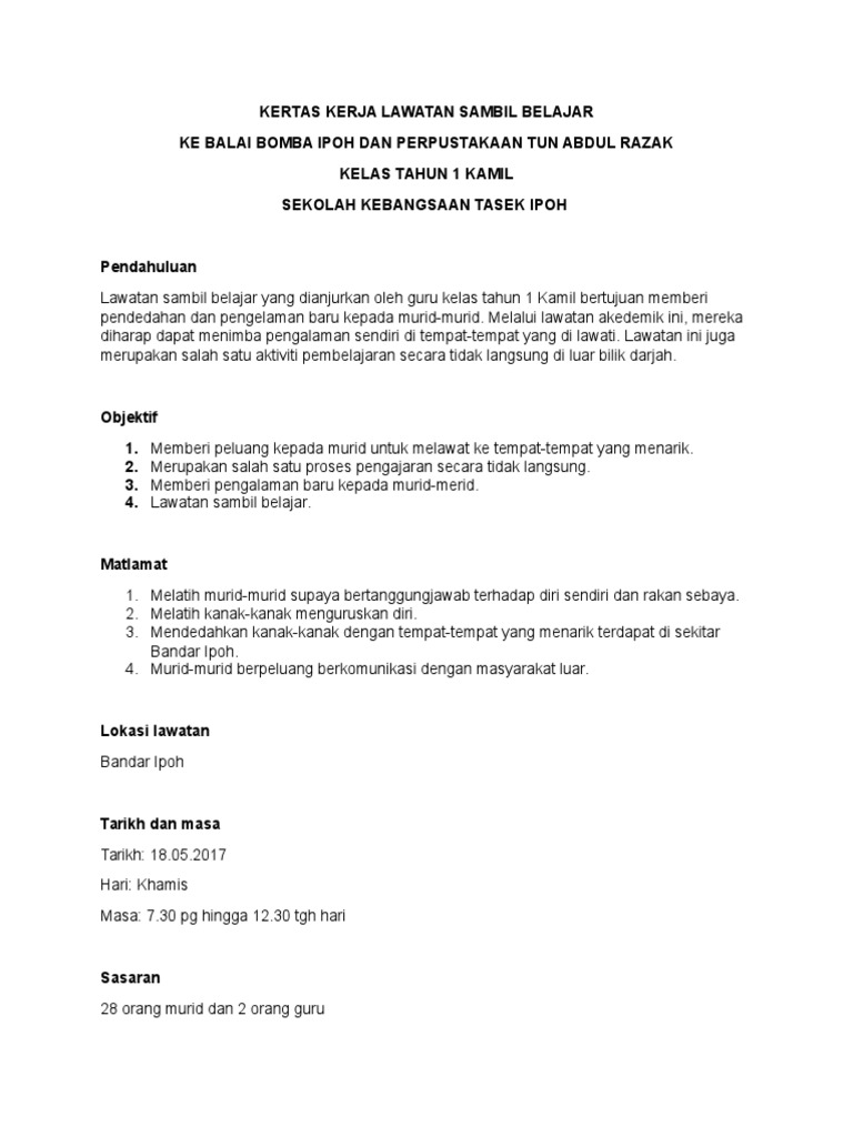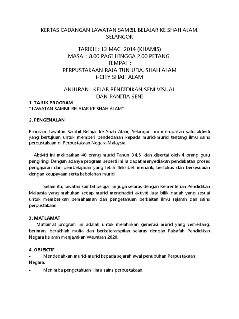 Kertas Cadangan Lawatan Sambil Belajar Ke Shah Alam
