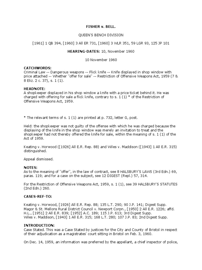 Lm Fisher V Bell A Short Summary For The Case Of Fisher V Bell Studocu