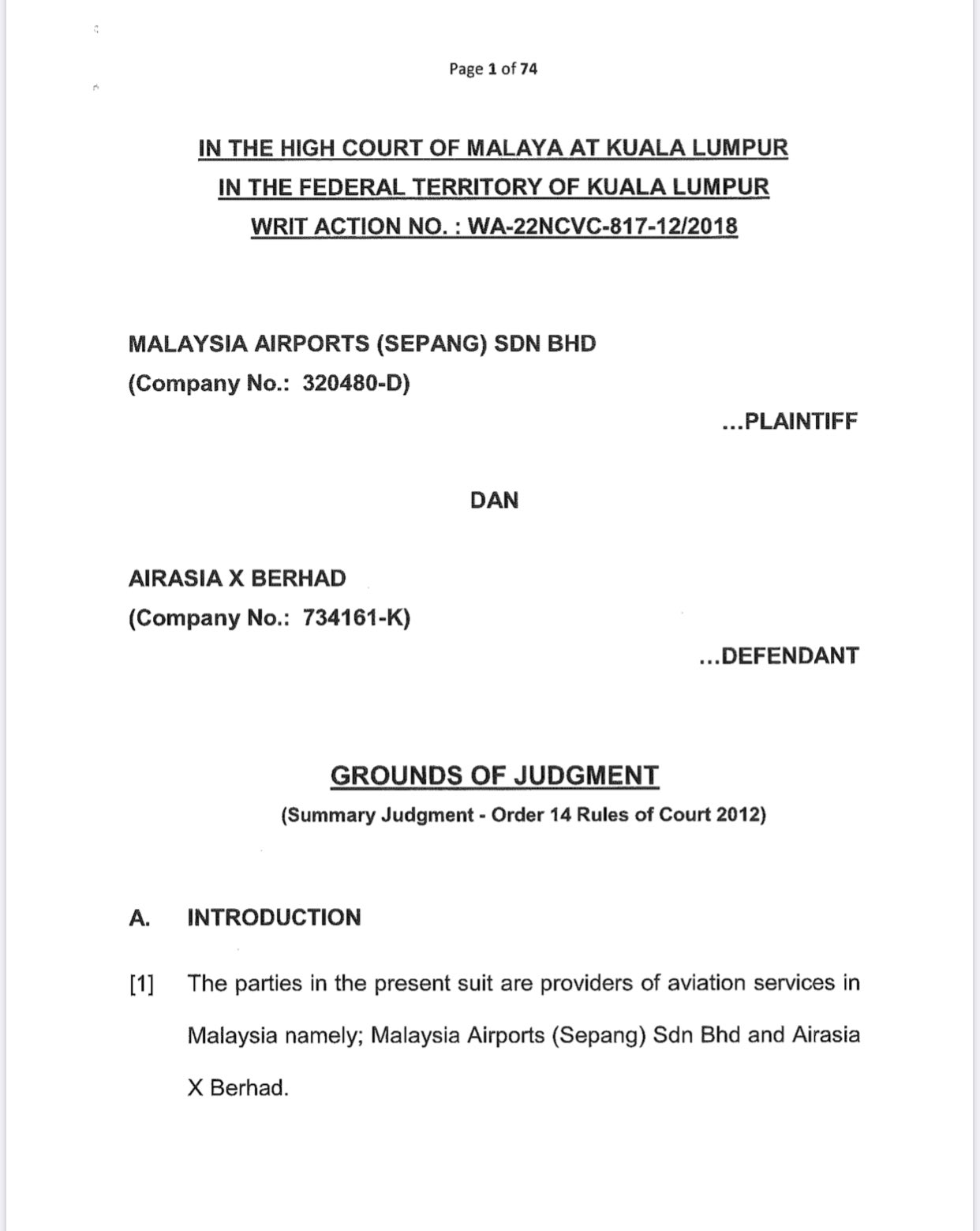Wee Choo Keong On Twitter Kl High Ct Just Issued Its Grounds Of Judgment In My Airports V Airasia Claim For Outstanding Psc Of Rm40 Mil In A Nutshell The Ct Said Power