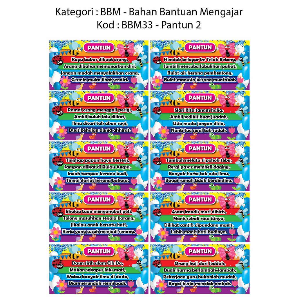 Poster Carta Pantun 2bahasa Melayu Bbm33 Shopee Malaysia