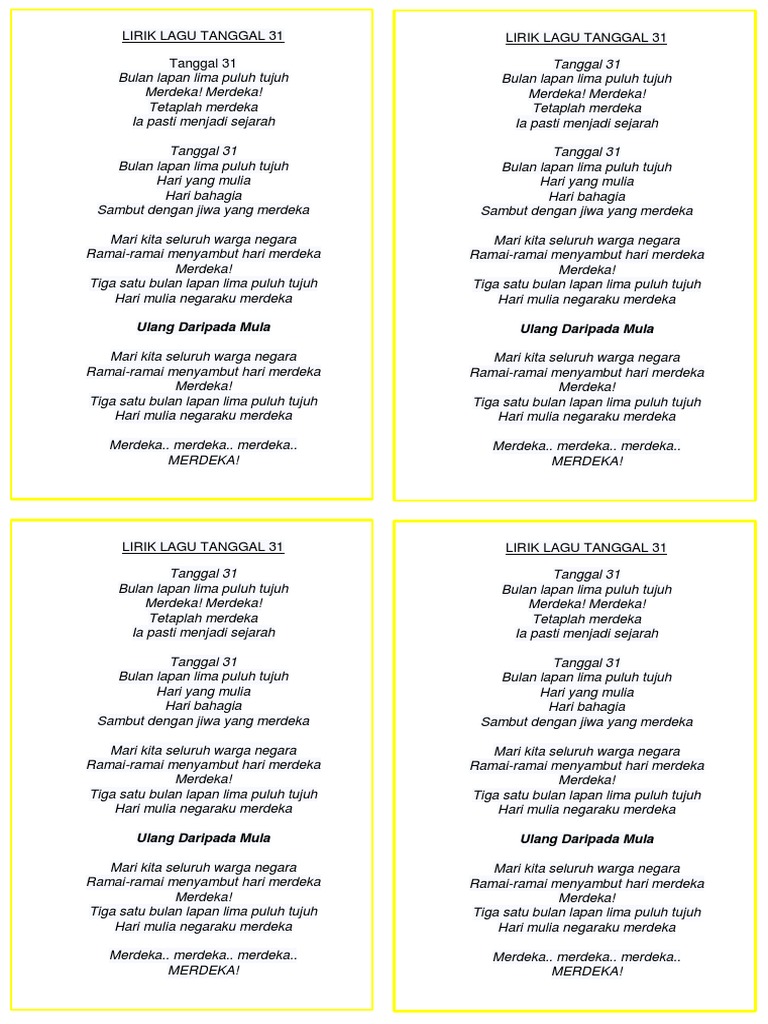 Patriotik Lagu Tanggal 31 Lirik