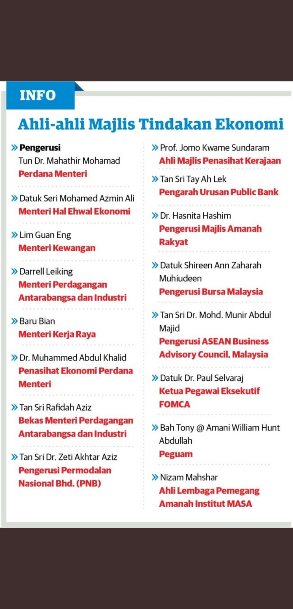 Senarai Majlis Tindakan Ekonomi