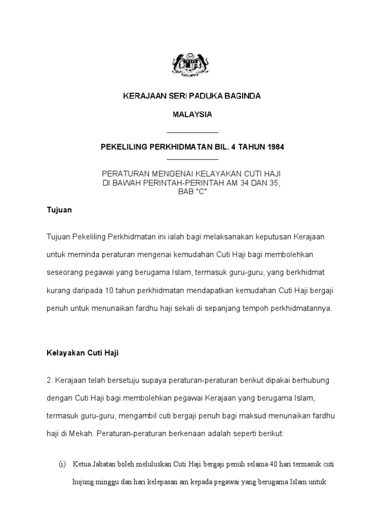 Permohonan Cuti Haji Di Bawah Perintah Am 34