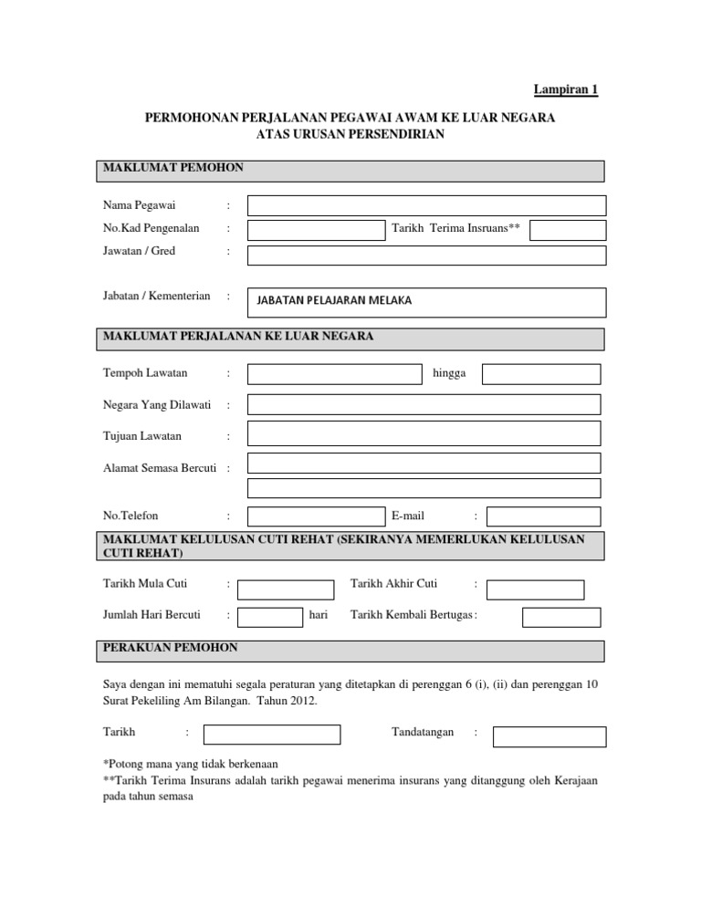 Permohonan Perjalanan Pegawai Awam Ke Luar Negara Atas Urusan Persendirian Surat Pekeliling Borang Permohonan Mykssr Com