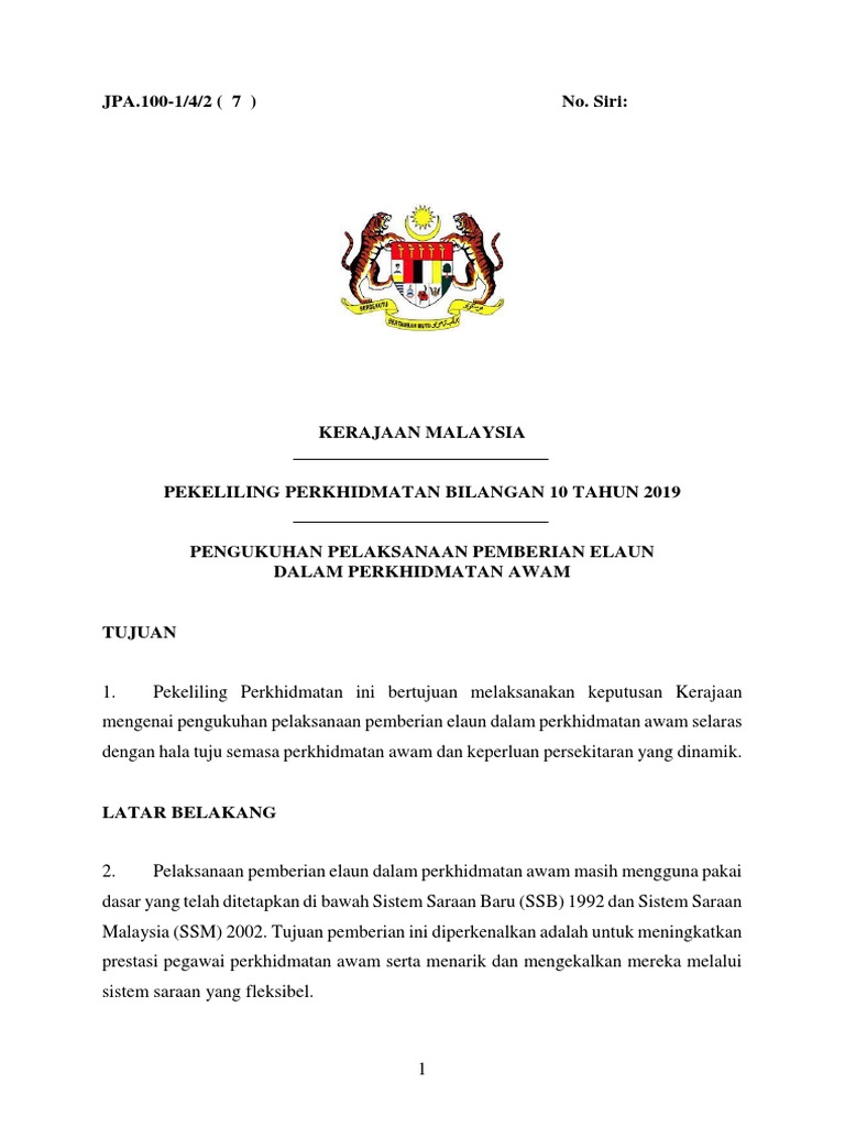 Pekeliling Perkhidmatan Bilangan 7 Tahun 2019