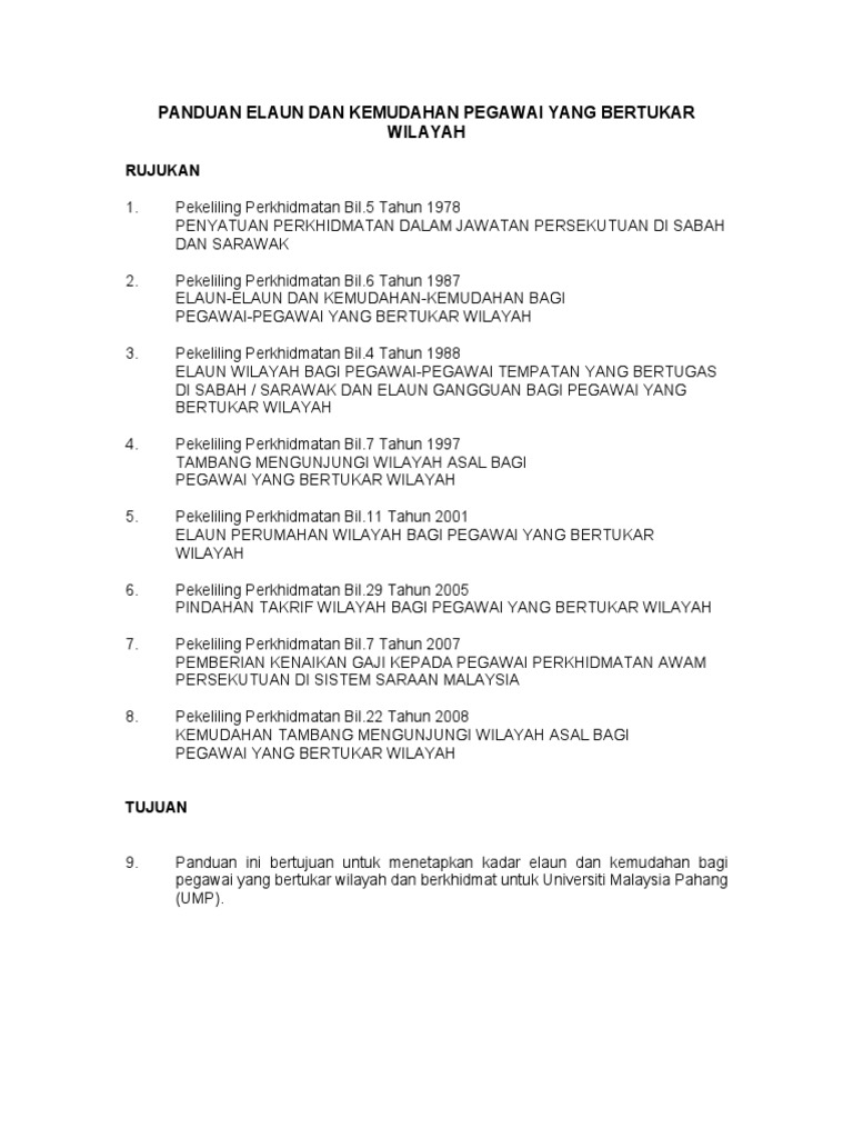 Panduan Elaun Dan Kemudahan Pegawai Bertukar Wilayah Pdf