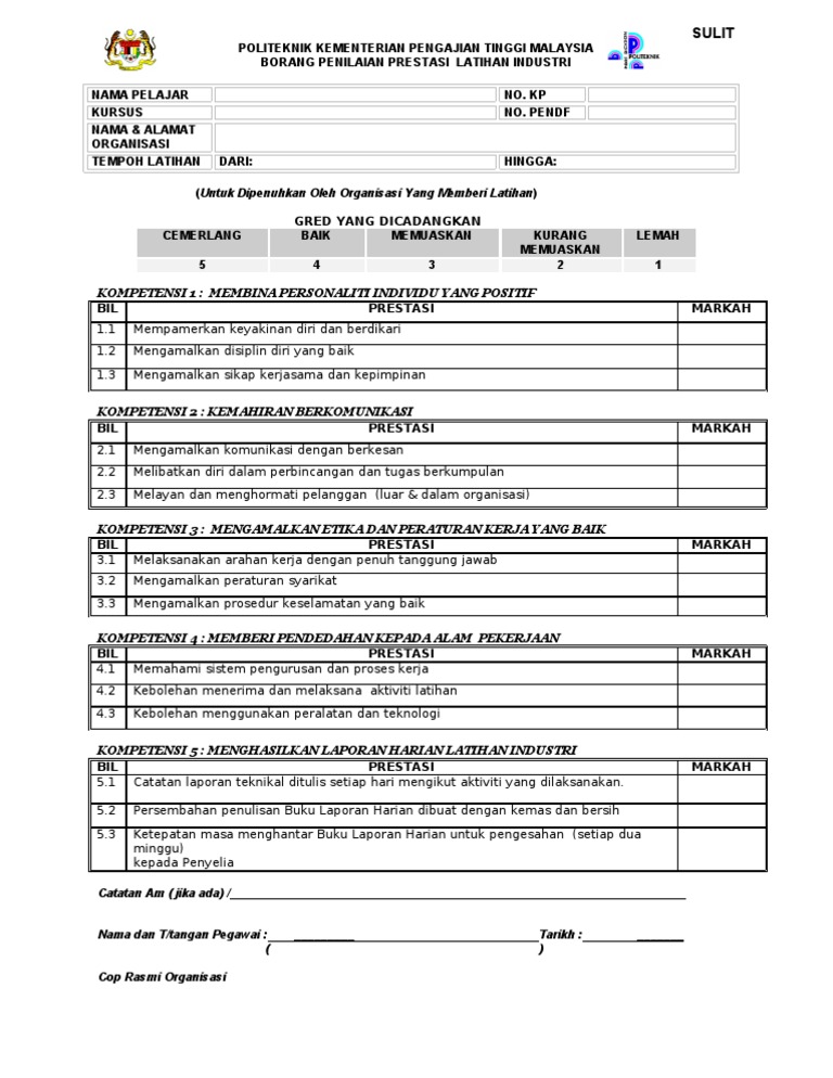 Borang Penilaian Prestasi Kerja