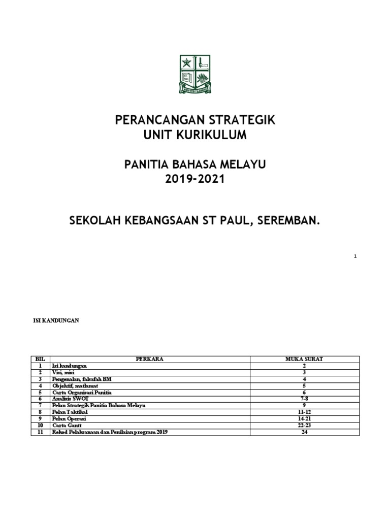 Doc Contoh Pelan Strategik Dan Pelan Taktikal Panitia Bahasa Melayu Sk Sulaiman Academia Edu