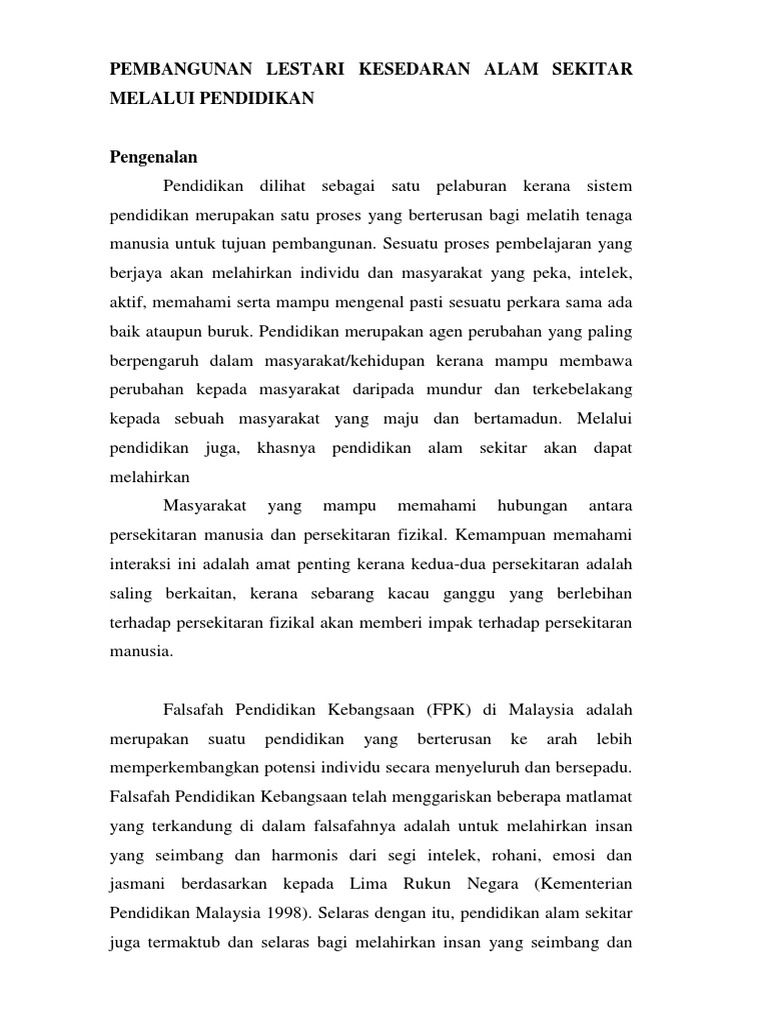 Pdf Pendidikan Alam Sekitar Menyumbang Ke Arah Peningkatan Kualiti Hidup Masyarakat Di Malaysiapembangunan Lestari Kemajuan Ekonomi Sosial Kebudayaan سيتي شزانا Academia Edu
