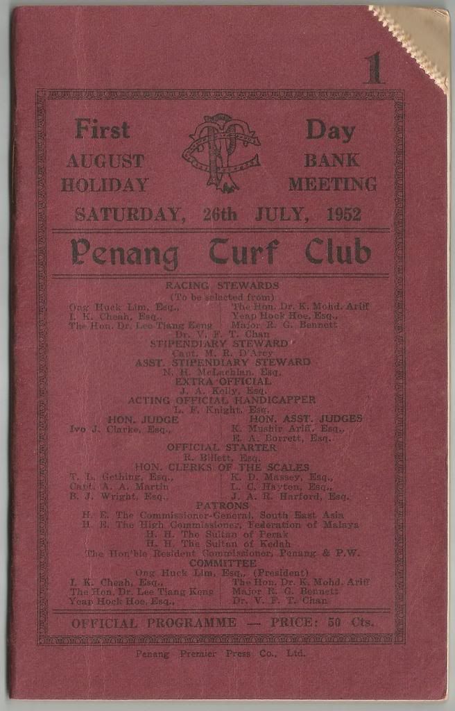 Penang Turf Club Race Card 1