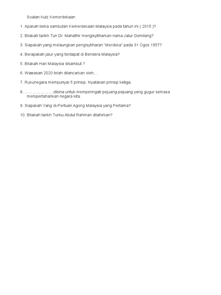 Contoh Soalan Kuiz Kemerdekaan Dan Jawapan Persoalan V